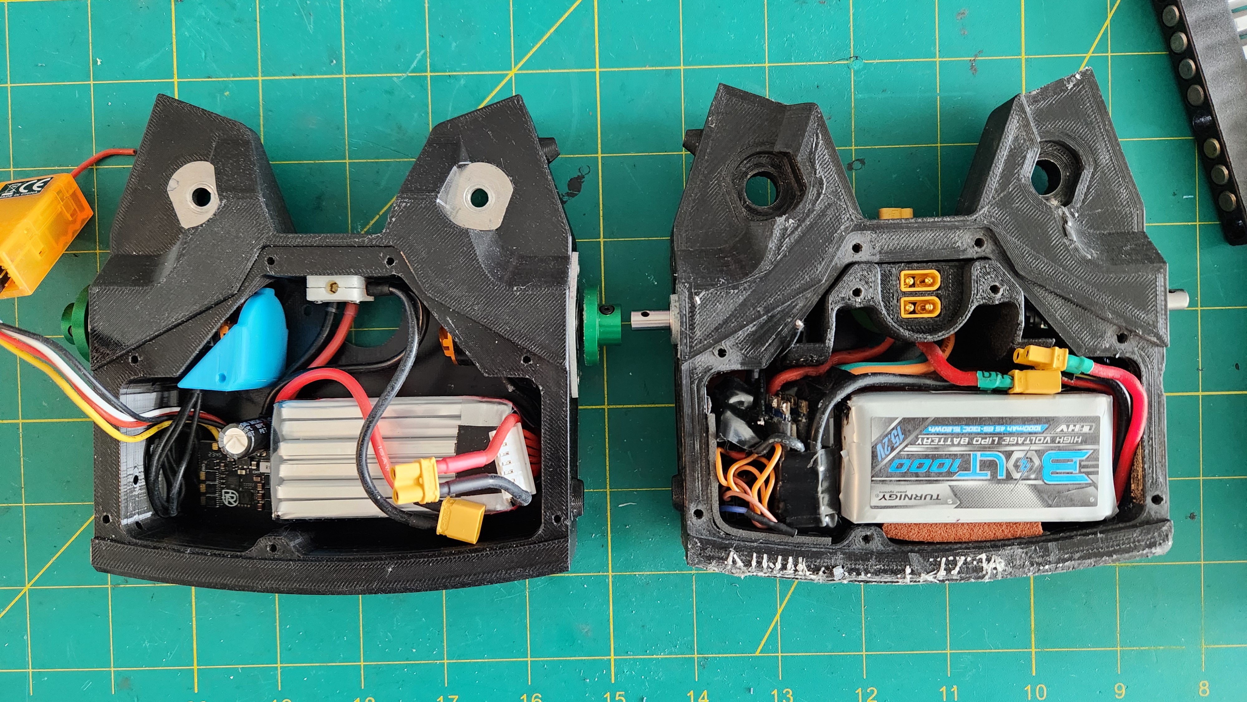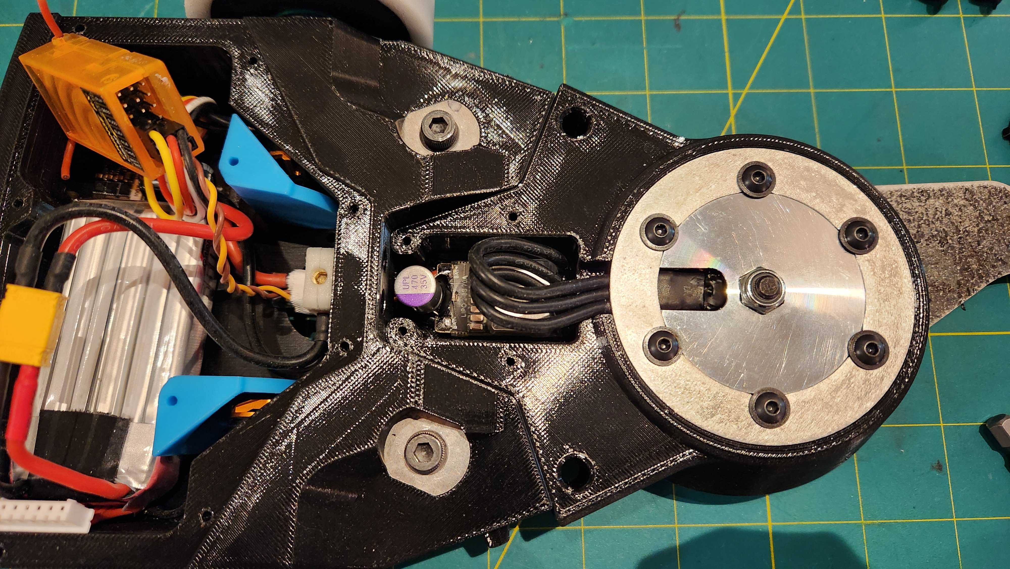 The hubmotor will hopefully reduce the total weight of the weapon system by having fewer components. At minimum, it will free up internal volume and allow for a non-disk blade shape. The 6s voltage system should be more efficient in addition to being generally more compatible with the low kv outrunners. Finally AM32 firmware has been all the craze lately for its low-speed tracking and spicy starts. Seems like the perfect pairing for a torquey hubmotor.