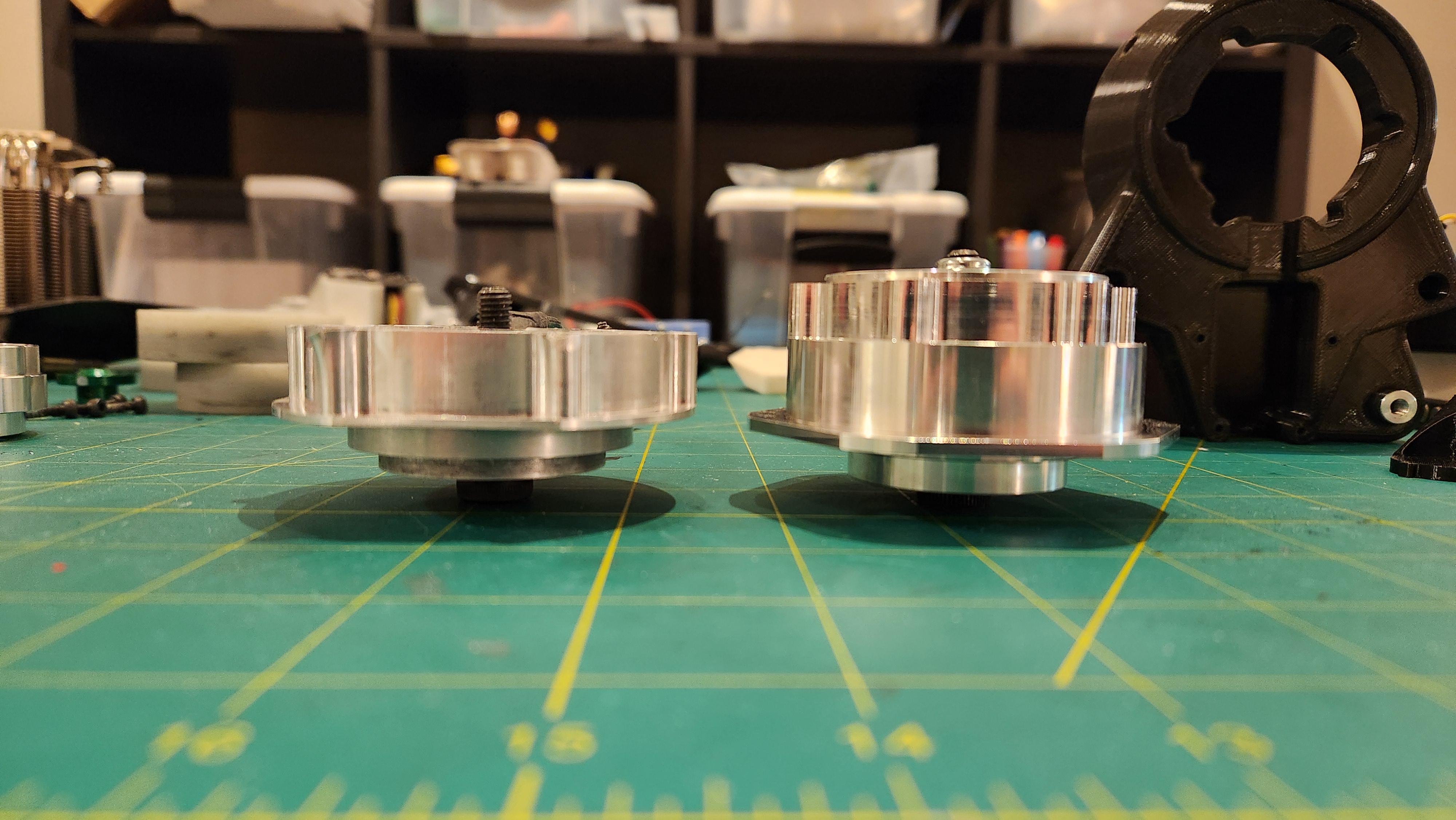 People may remember, this isnt my first hubmotor by a longshot. In fact, the original SS hubmotor (~2017) was actually pretty good mechanically but would be underpowered by today’s standards. And remembering that SS will be 4.5 lbs, significant overhead will be needed in order to self-flip from any orientation. So we’ll start as that as a baseline and make it bigger, haha. For reference, the old motor was based around an RC Timer 4215-650kv (35 x 7 mm stator size). Also check out Aaron’s robot pages for more good hubmotor reference material.