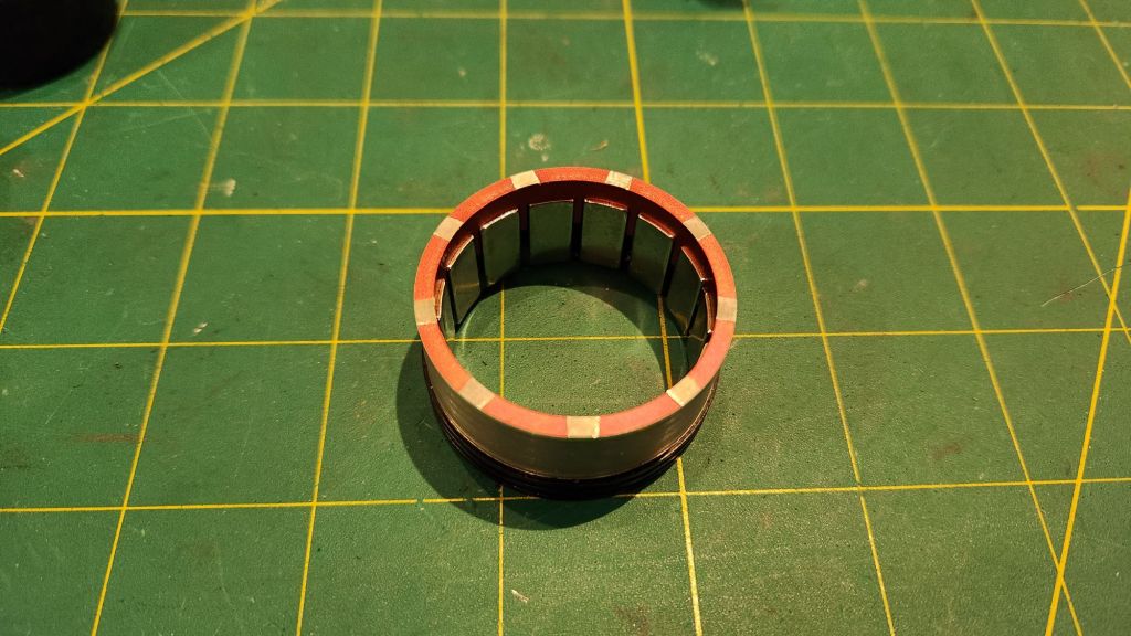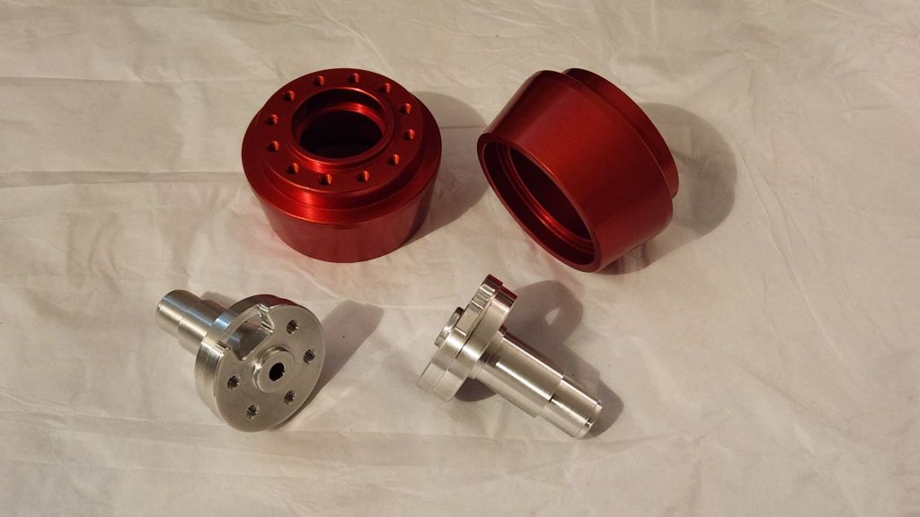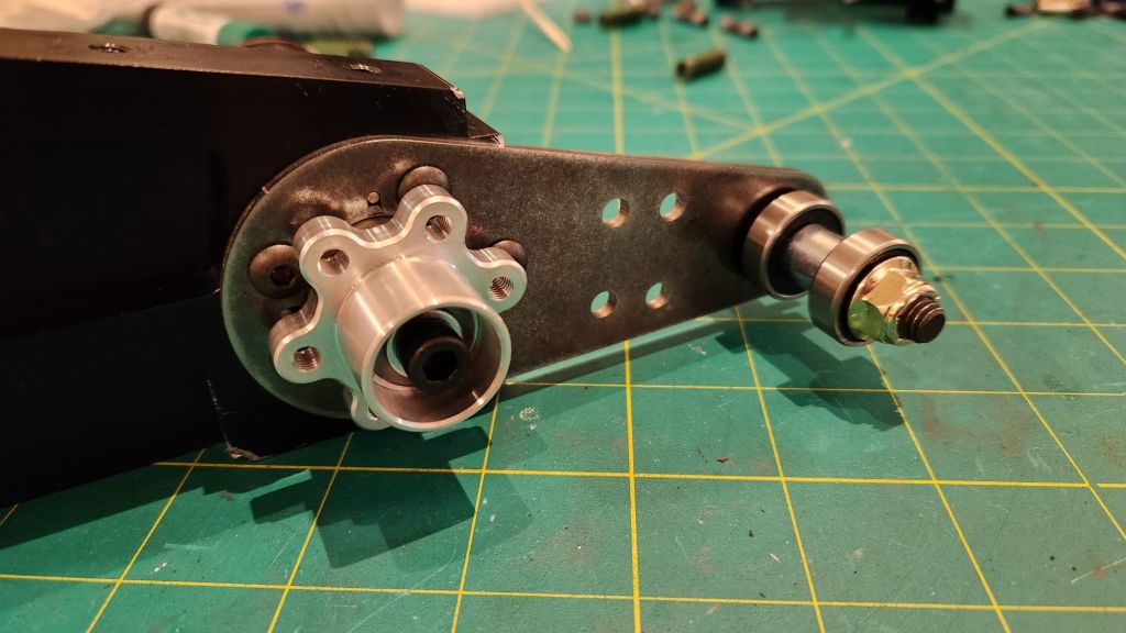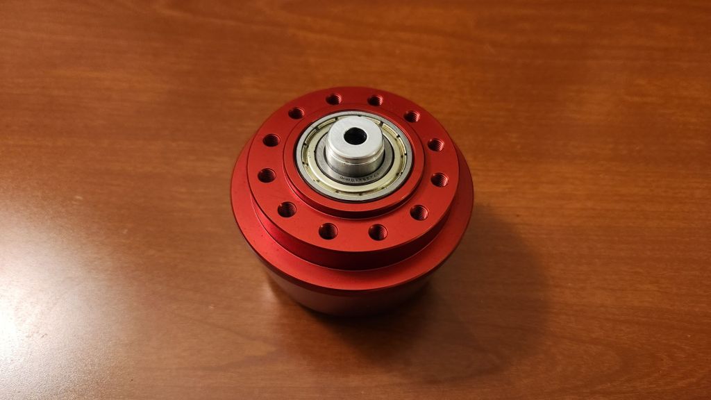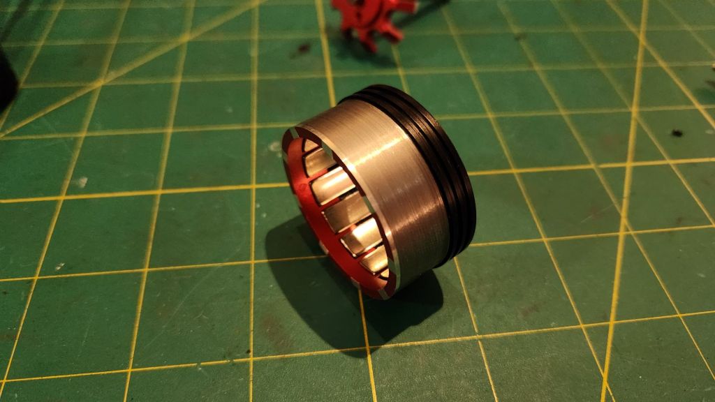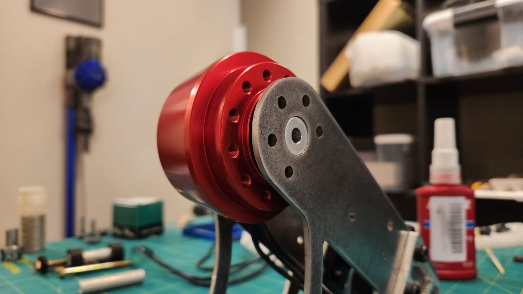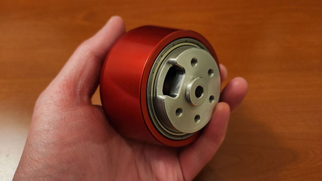 For the prototype, I also designed the hubmotor around existing sizes and geometries. The arm plate internal width was set by the clutch billet at the base of the arm and I would be reusing the 10mm thick blades from last year. The biggest challenge was finding an appropriately sized motor with a large enough ID. By recommendation of Derek, I stumbled upon the Brotherhobby T7 series motors which promised a 20mm ID stator, larger than other motors in the 45mm class. More beautiful parts made by LT Century. This time I included the key groove so I wouldn’t have to carve one myself!