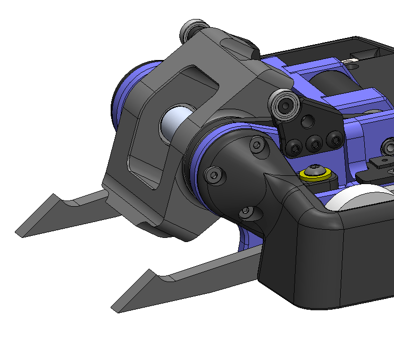 Instead, I will be exploring thick TPU side guards. MegatRON already uses TPU side guards and has been demonstrated by many other robots in the same class. What would have been a challenge in technique and jigging is now an 3D modeling exercise. I designed them with the familiar curves and sweeps in addition to guards for the weapon shaft nut.
