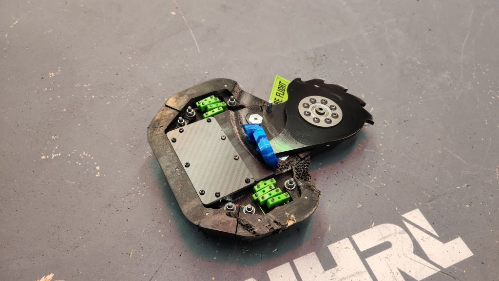 Well… it looks like I will be rebuilding the bot. To make things worse, they accidentally sprayed the bots with a powder extinguisher which was awful to clean and ruined the open bearings. Aside from the obvious mechanical and battery losses, I also lost a receiver and one drive esc.
