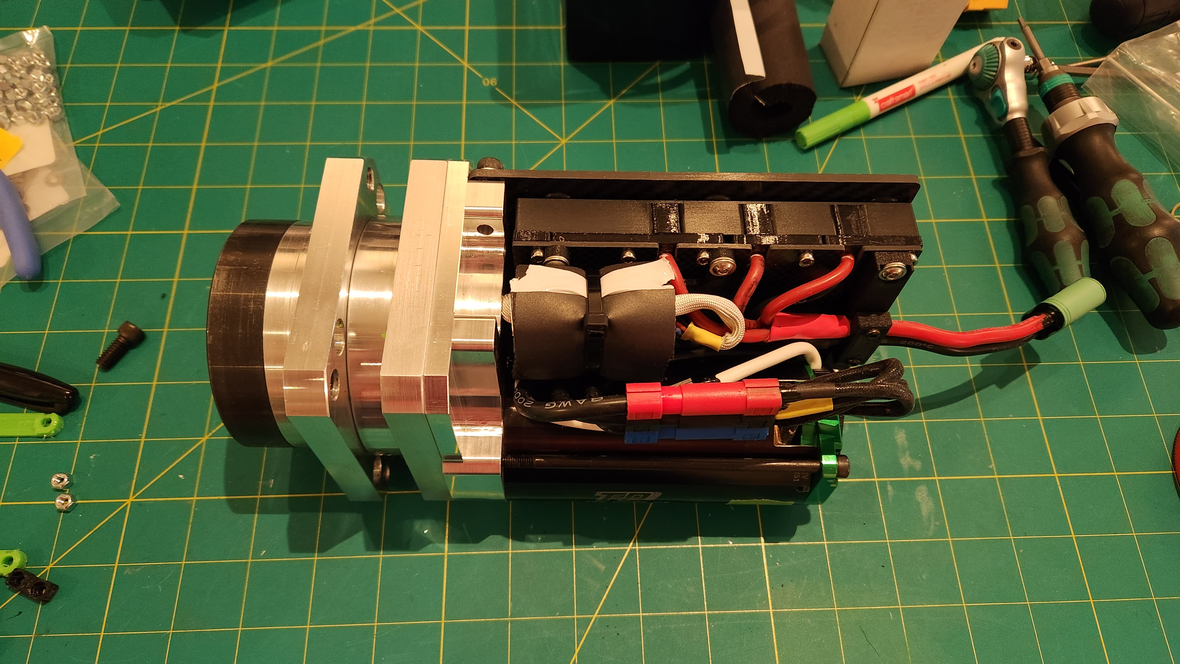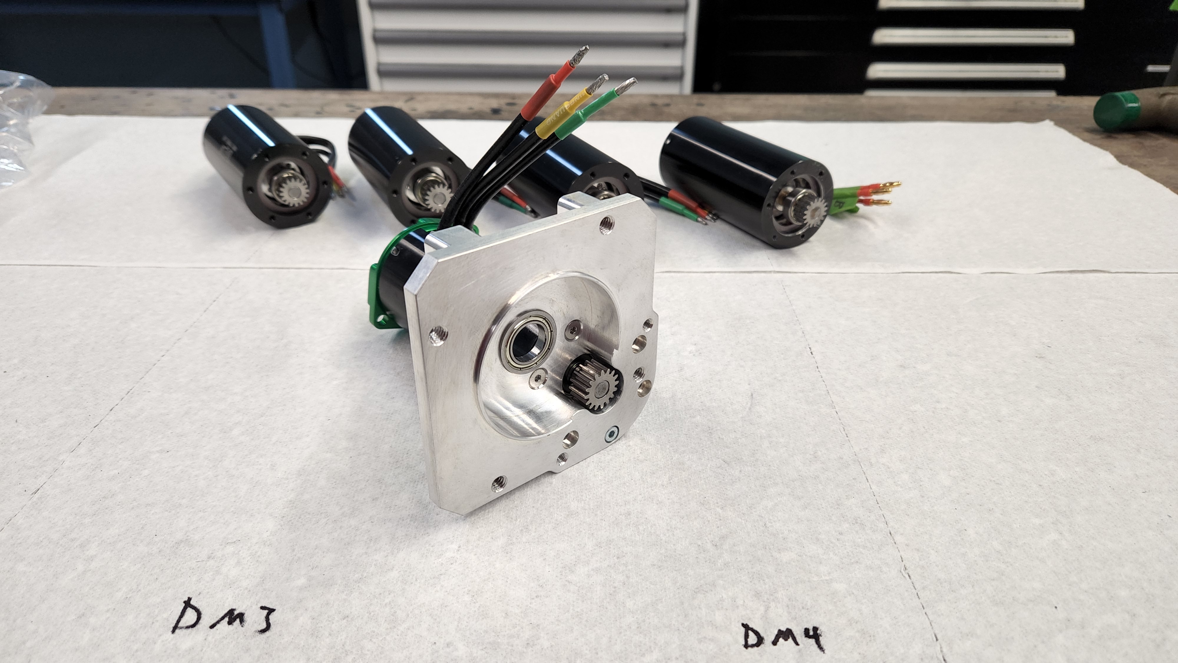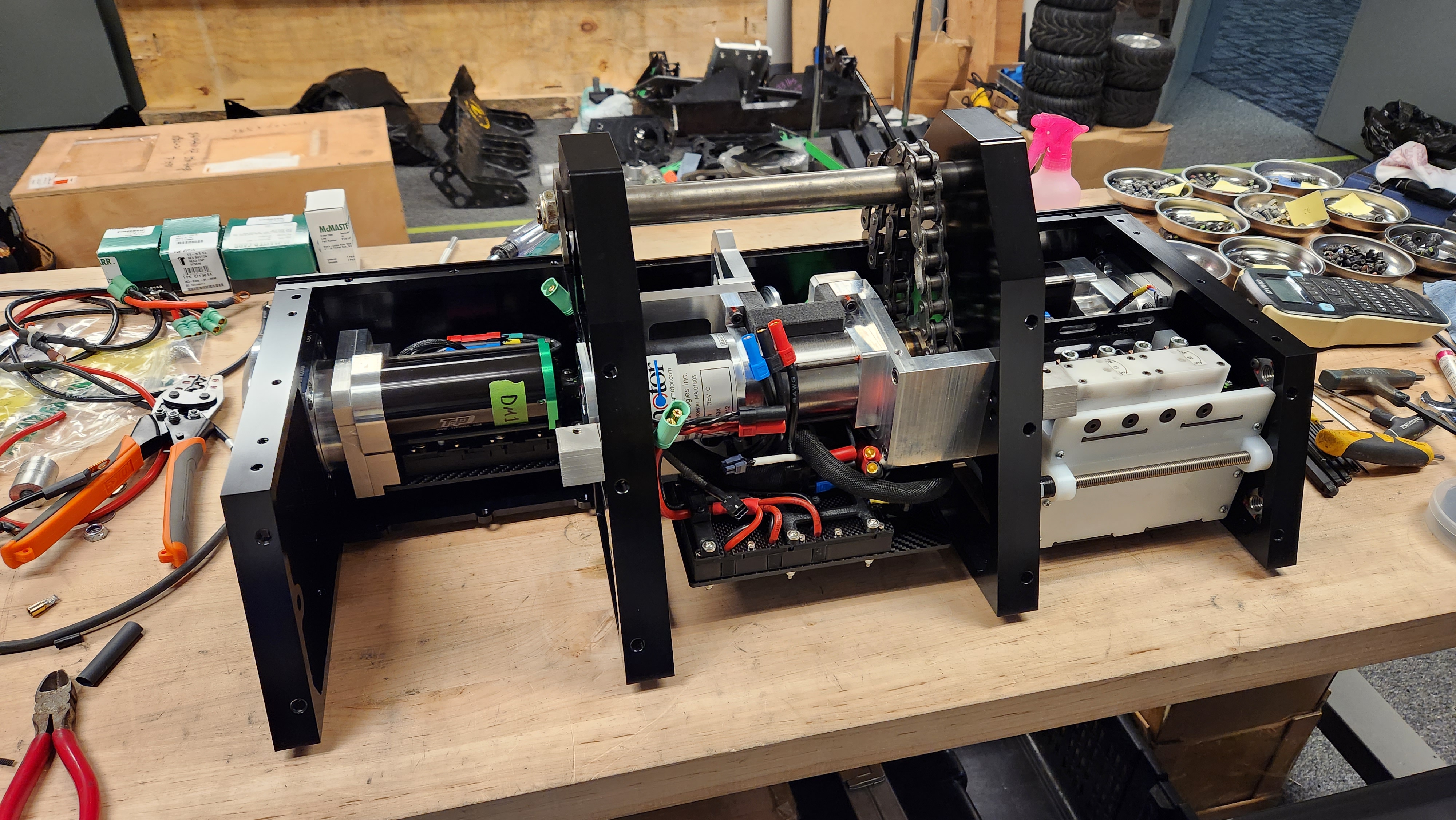 - Drive: Custom drive modules featuring TP Power 5690 motors, Harmonic Drive planetary gearboxes, and VESC 75/300 control electronics. Custom vulcanized rubber tires
